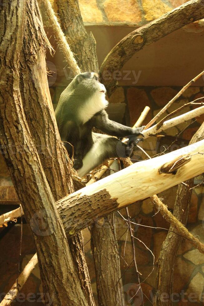 De Brazza's Monkey is a medium-sized monkey sitting on a large tree. Side view Pro Photo