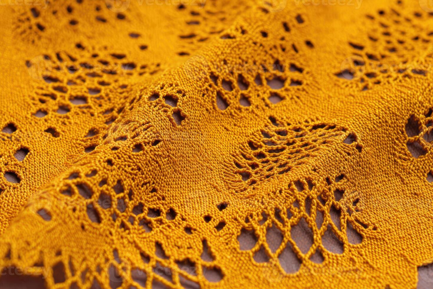 Lace fabric with intricate patterns in warm yellow color Pro Photo