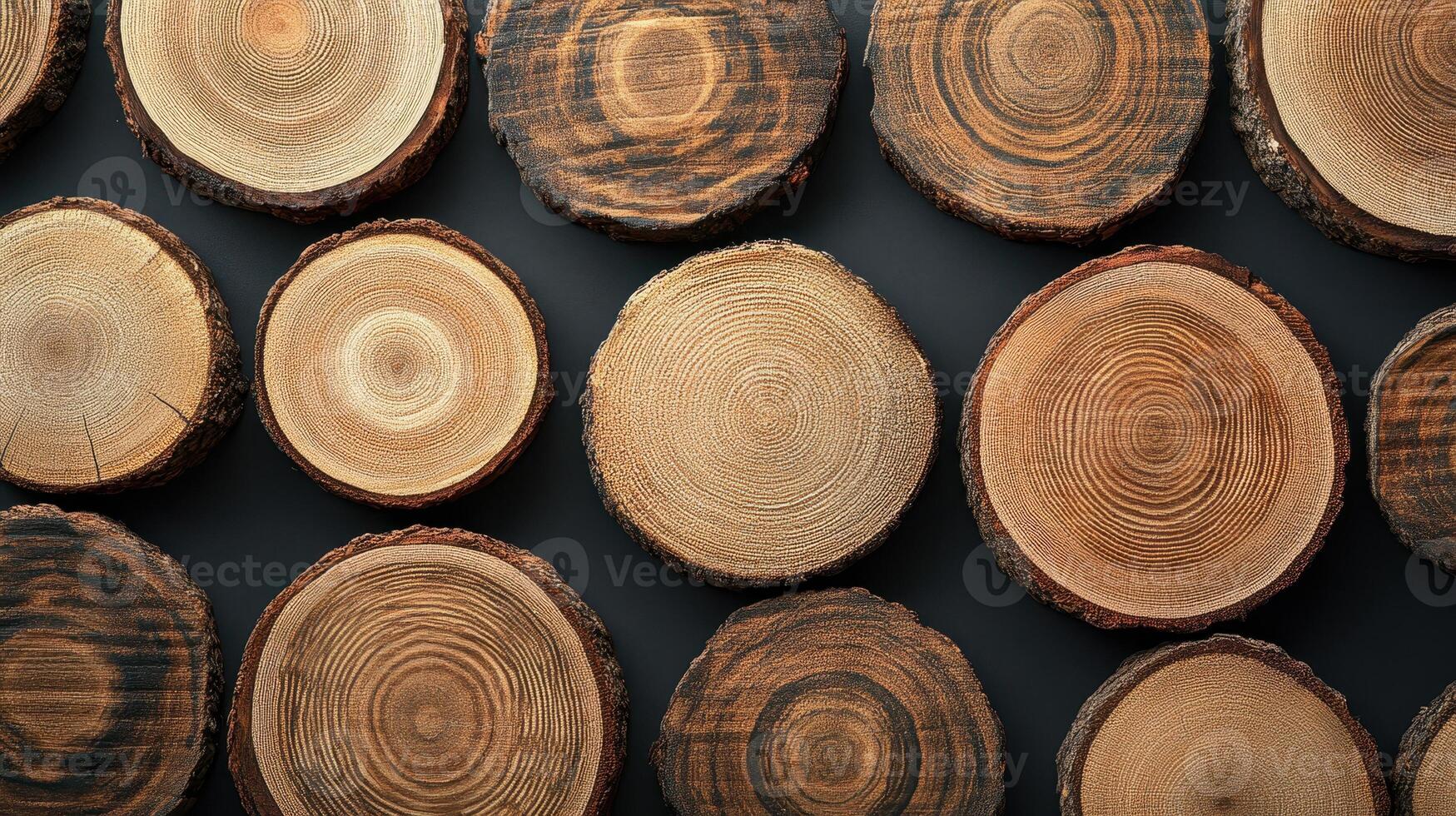 Round Cross Sections of Tree Trunks With Visible Growth Rings Displayed Pro Photo