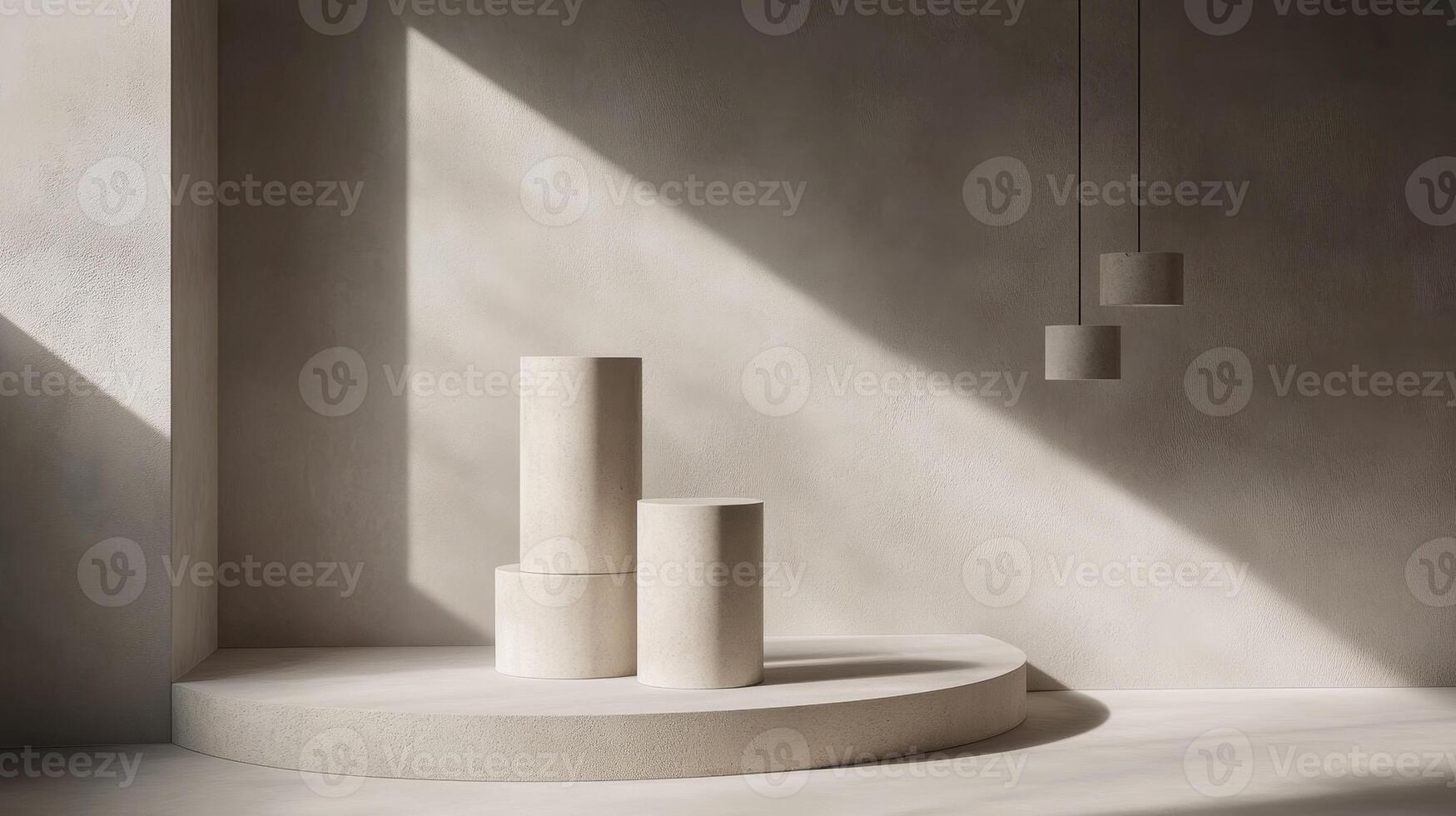 Cylindrical Platforms in a Studio With Geometric Shapes and Soft Light Pro Photo