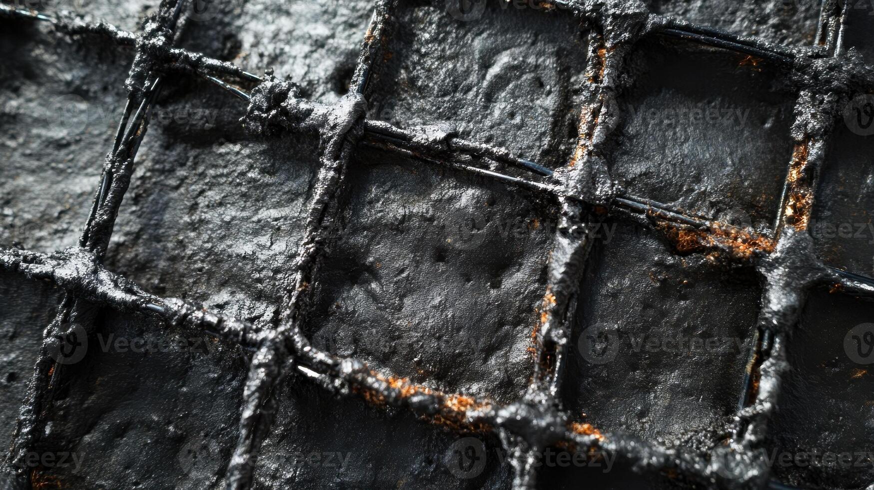 Close up of Charred and Broken Metal Grid in Aftermath of Fire Pro Photo