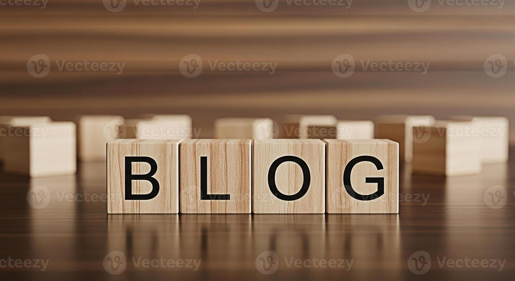 Wooden blocks spelling BLOG on a polished wooden surface symbolizing online content creation and community engagement in a warm inviting setting conveying a sense of creativity and connection Pro Photo