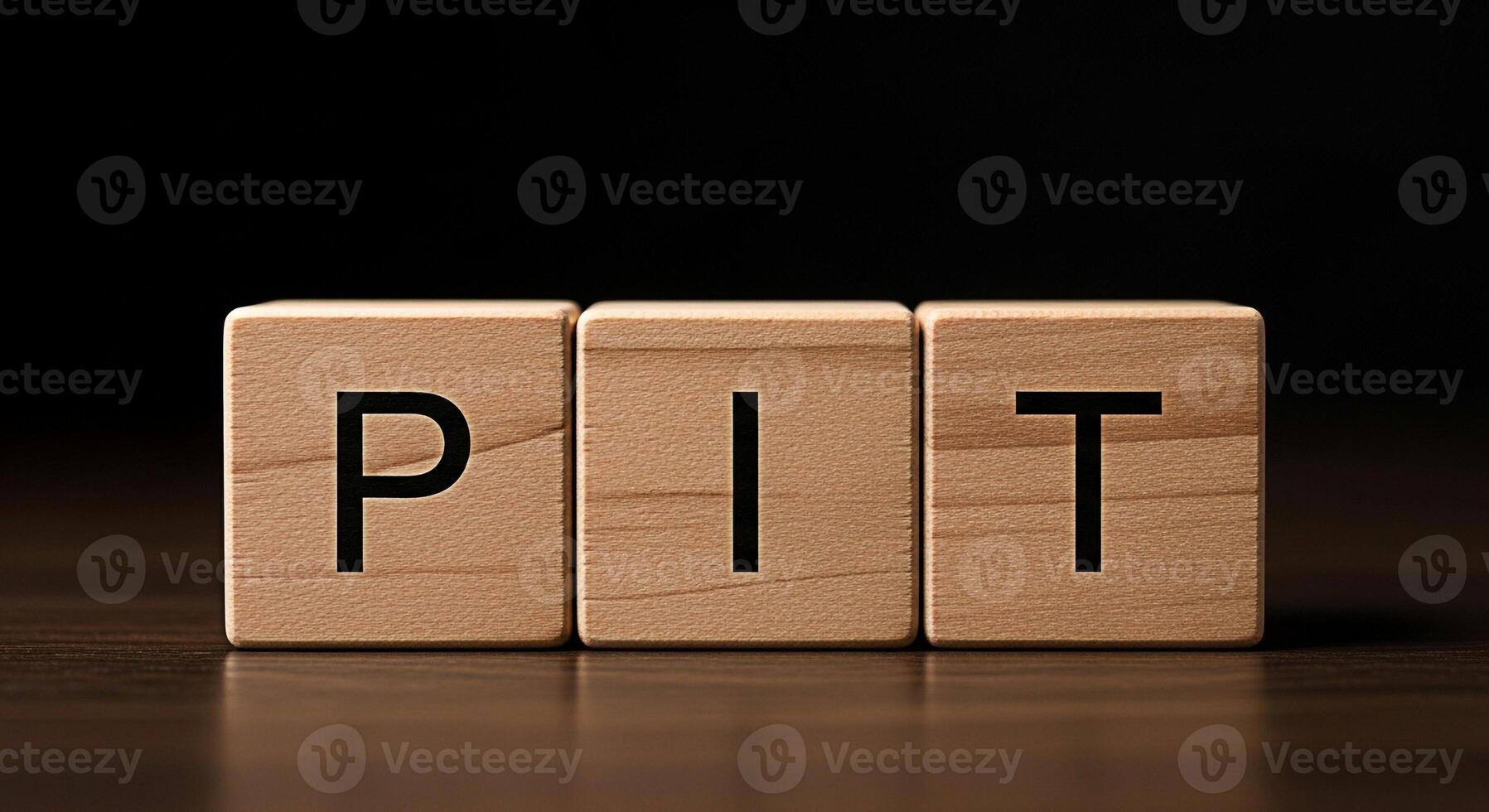 Wooden blocks spelling PIT on a dark wooden surface representing a challenging situation or a difficult problem conveying a sense of adversity and the need for strategic problemsolving Pro Photo