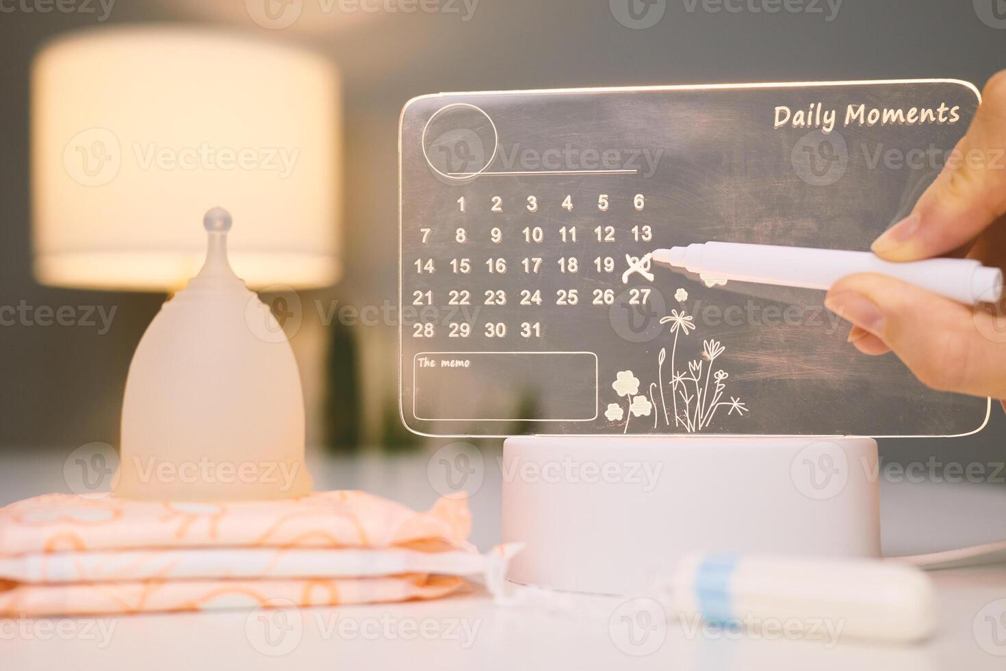 A hand holds a white marker to personalize a translucent calendar on a table. The soft glow of a lamp and nearby items create a warm, inviting atmosphere in the evening Pro Photo