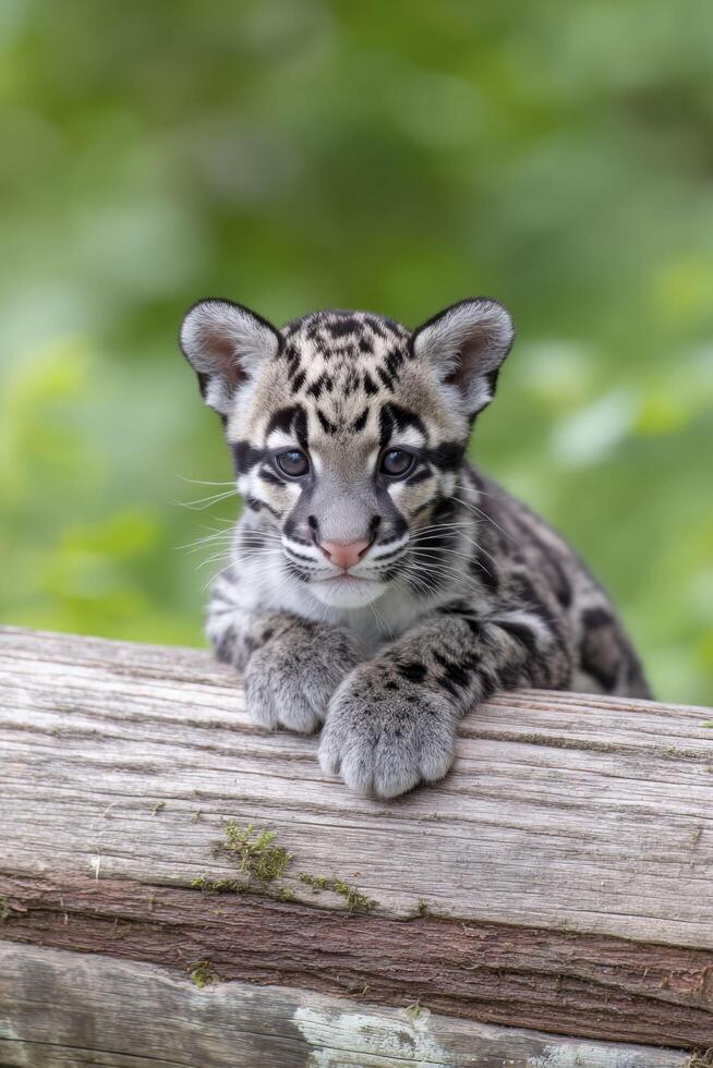 Adorable Clouded Leopard Cub Resting on a Log Free Photo