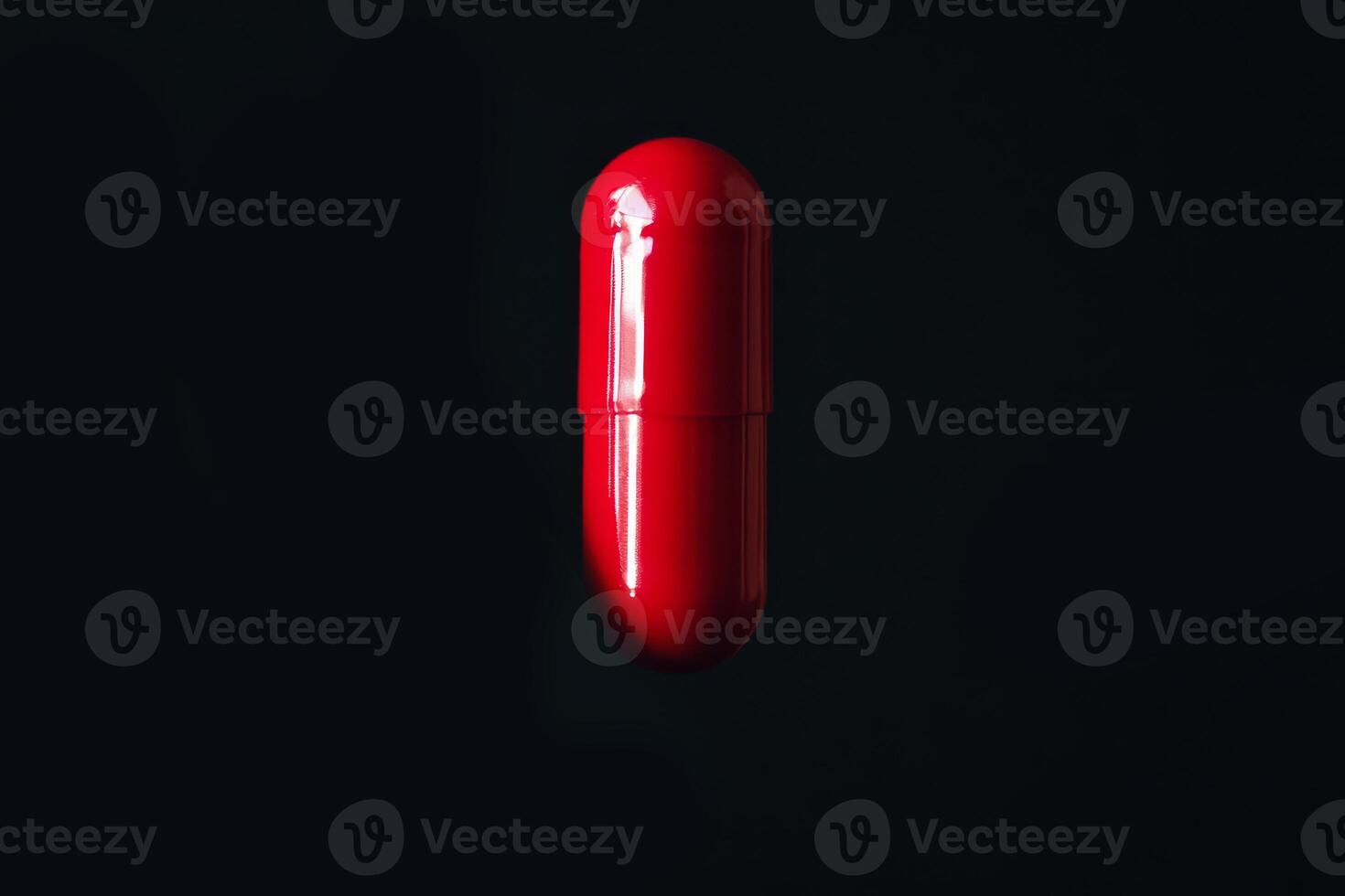 A glossy red capsule is positioned centrally against a dark backdrop, showcasing its smooth texture and distinct form Pro Photo