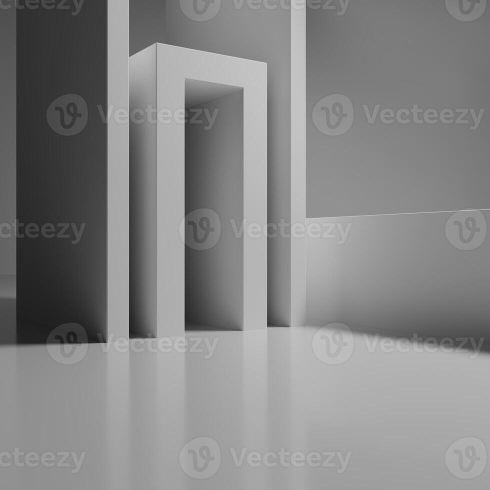 Empty building structure with geometric structure, 3d rendering. White abstract geometric construction, empty indoor architecture scene. Minimal abstract architectural 3D render with soft light, 3D Pro Photo