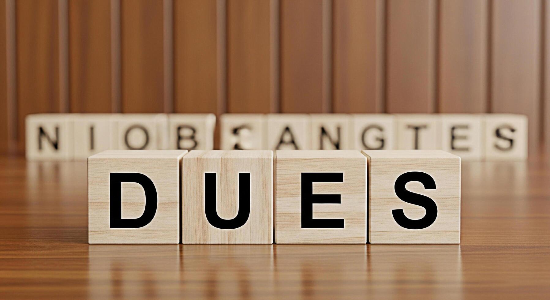 Wooden blocks spelling out DUES on a polished wooden surface creating a sense of financial obligation and responsibility in a business setting emphasizing the importance of timely payments and fiscal photo