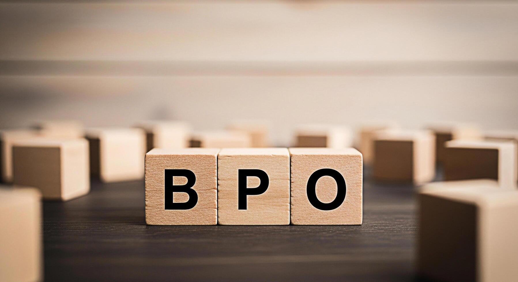 Wooden blocks displaying BPO on a dark wooden surface representing business process outsourcing in a corporate setting symbolizing efficiency and strategic partnerships for business growth and success photo