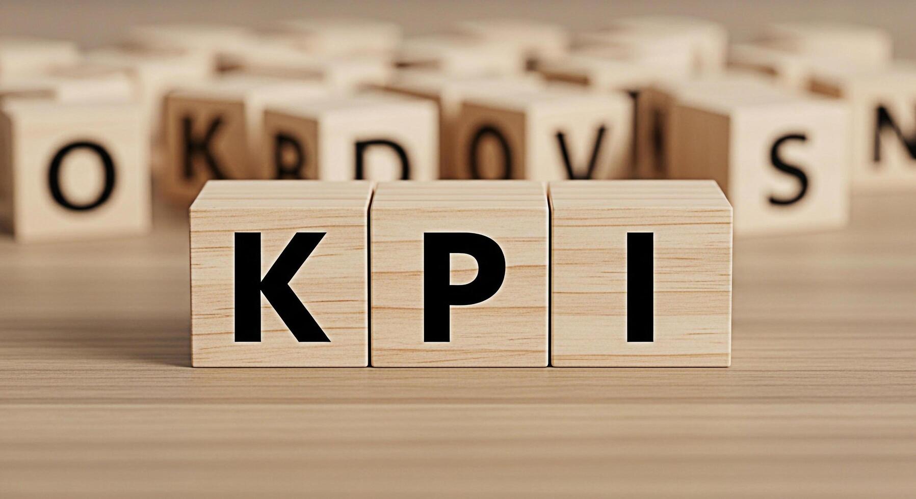 Wooden blocks displaying KPI on a wooden surface surrounded by other lettered blocks representing key performance indicators in a business setting symbolizing strategic goals and achievement photo