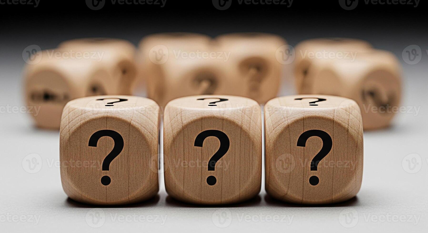 Wooden dice displaying question marks on a neutral surface representing uncertainty and the need for problemsolving in business and life creating a sense of mystery and intrigue Pro Photo
