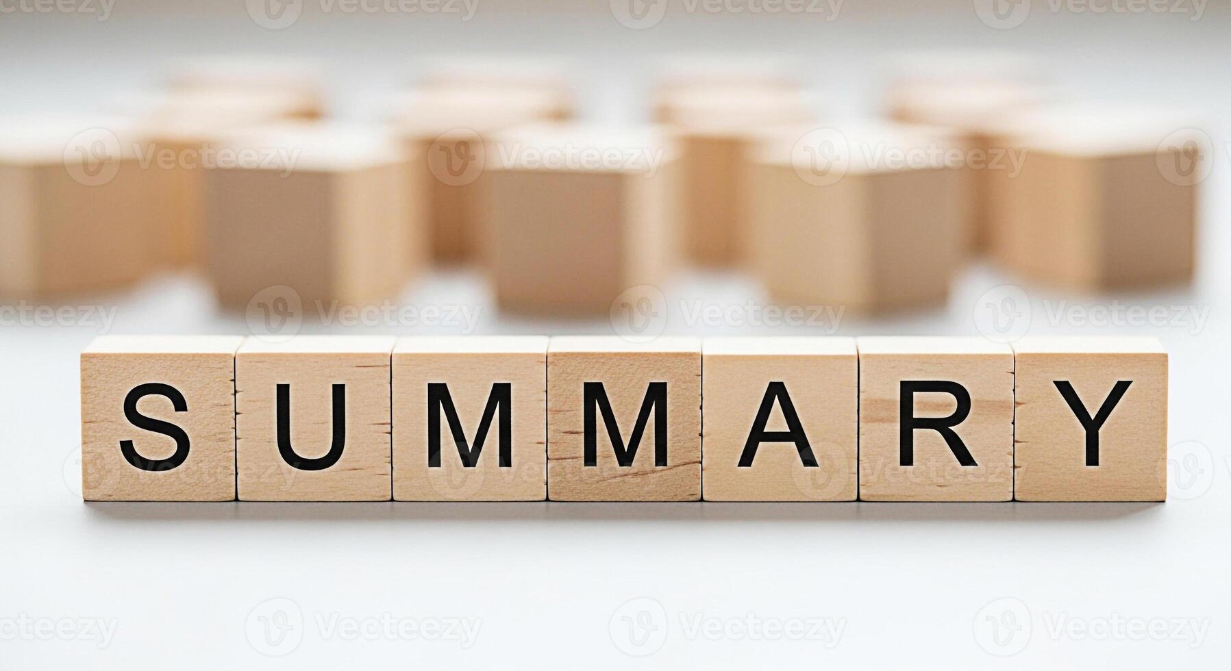 Wooden blocks spelling SUMMARY on a white surface representing a concise overview and key points conveying clarity and efficiency in a clean minimalist setting for business and educational purposes Pro Photo