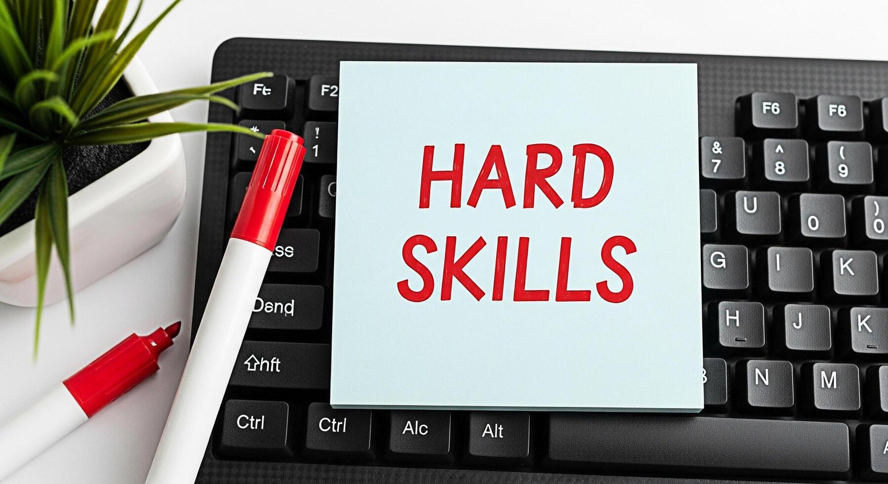 Hard skills concept displayed on a sticky note placed on a black computer keyboard in a modern office environment emphasizing the importance of technical abilities and expertise for career success Free Photo