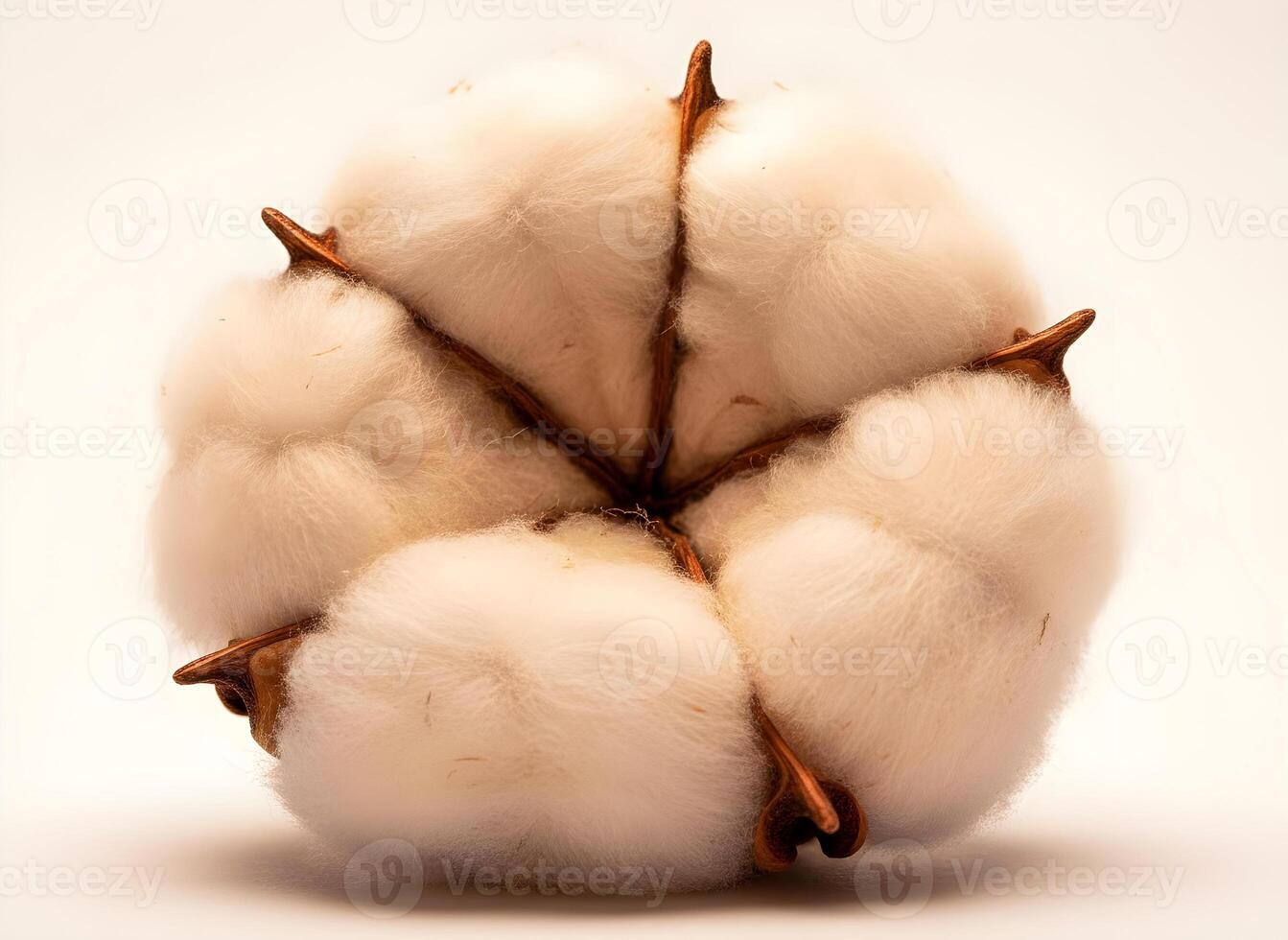 Close-up studio shot of a raw cotton fiber bundle on a white backdrop, captured with a macro lens to highlight the fluffy, cloud-like structure and subtle shadows, under controlled, even lighting. Pro Photo