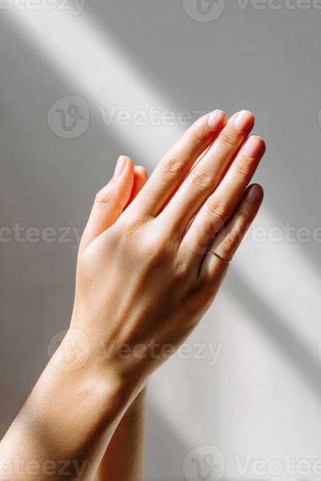 Silhouette of a single praying hand against a soft gradient background, capturing a moment of reflection and spirituality with copy space for text overlay Pro Photo