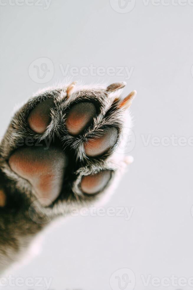 Paw of a cat gently touching a smooth glass surface, showcasing delicate fur textures and soft lighting, creating a serene and minimalist atmosphere with copy space Pro Photo