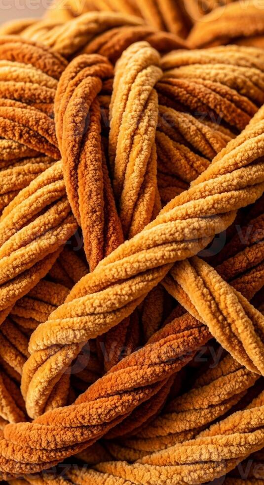 Close up abstract view of twisted strands of rustic orange and yellow yarn or rope creating a textured background Pro Photo