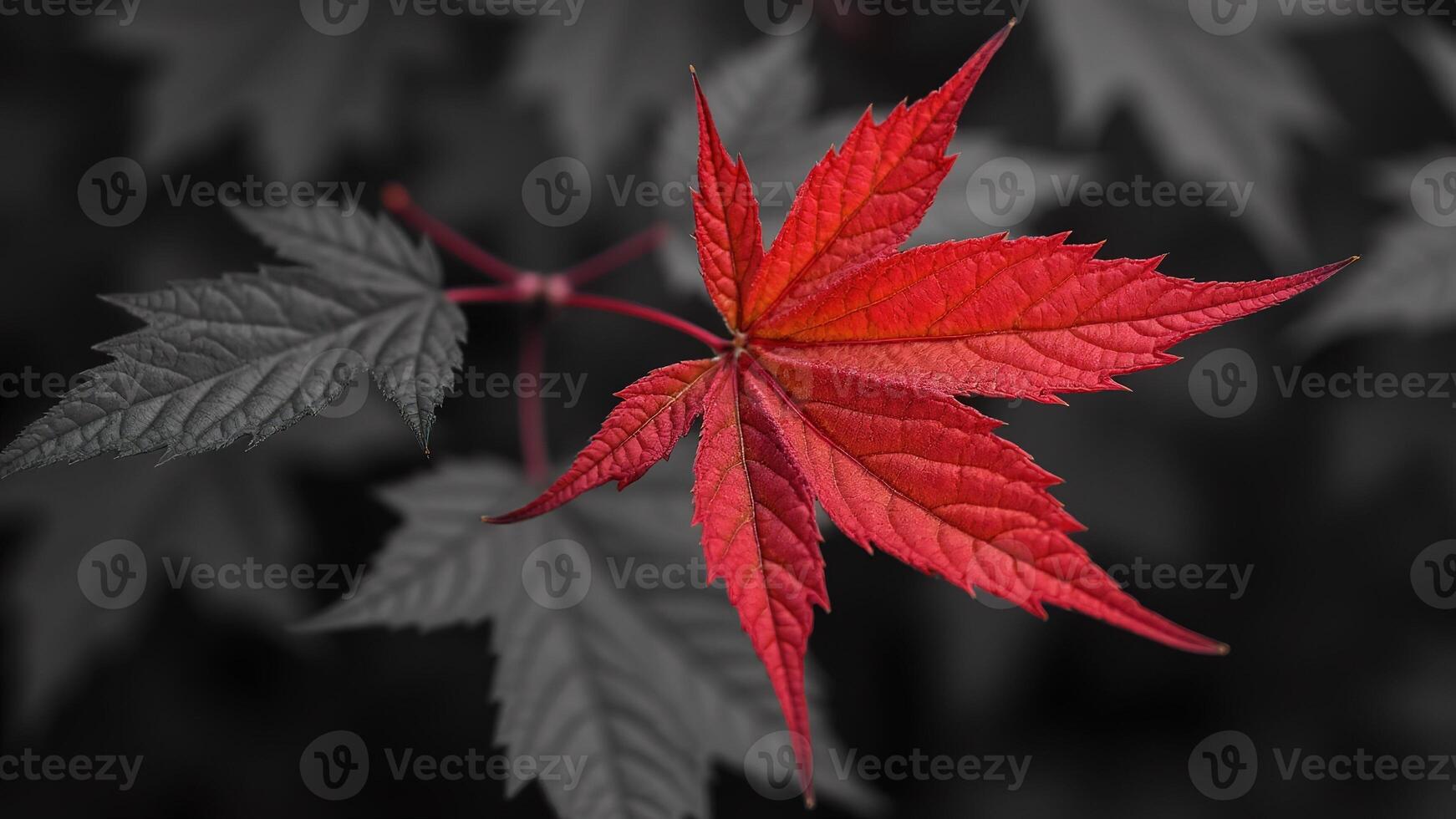 The is a closeup of a single red maple leaf. The leaf is in focus while the background is blurred making it the focal point of the . Pro Photo