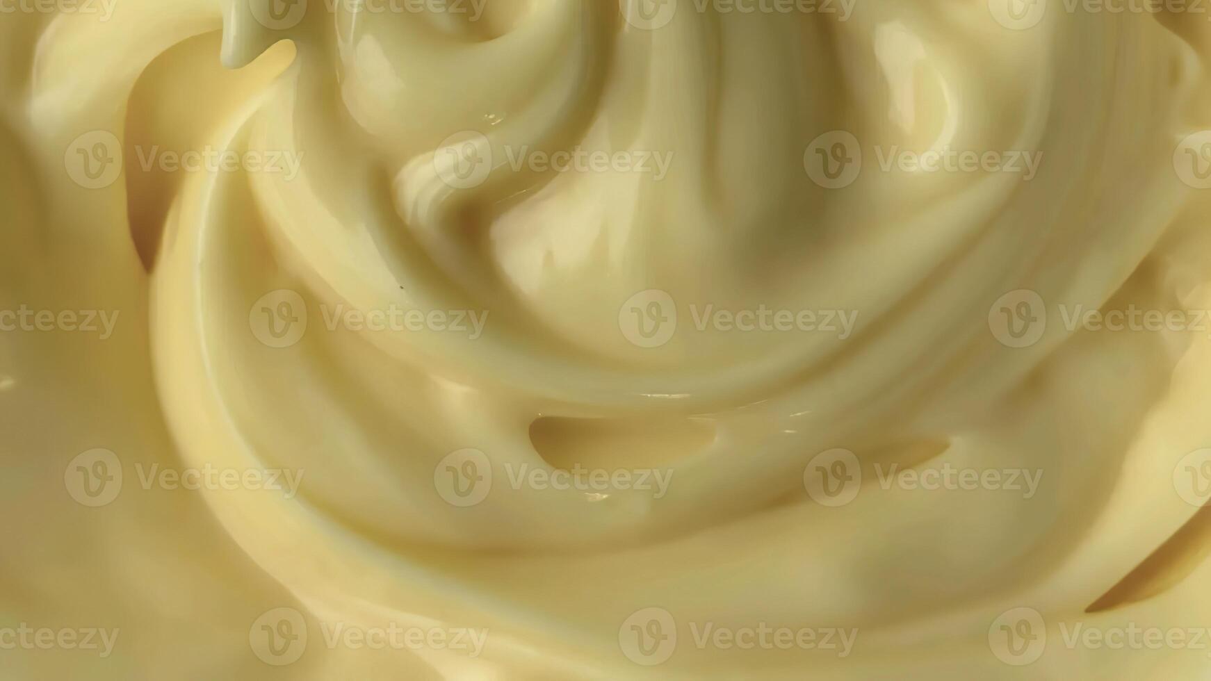 Smooth creamy swirl of rich yellow custard forming flowing curves and soft textured patterns that highlight its appetizing glossy surface in a detailed warm dessert culinary visual presentation Pro Photo