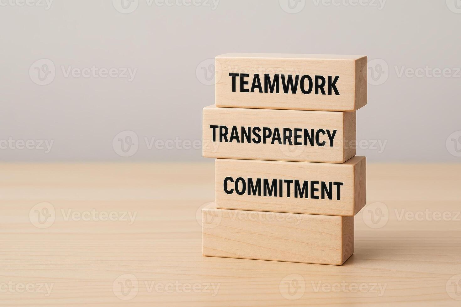 Teamwork transparency commitment words on wooden blocks symbolize business ethics values for successful collaboration and trust in professional environment Pro Photo