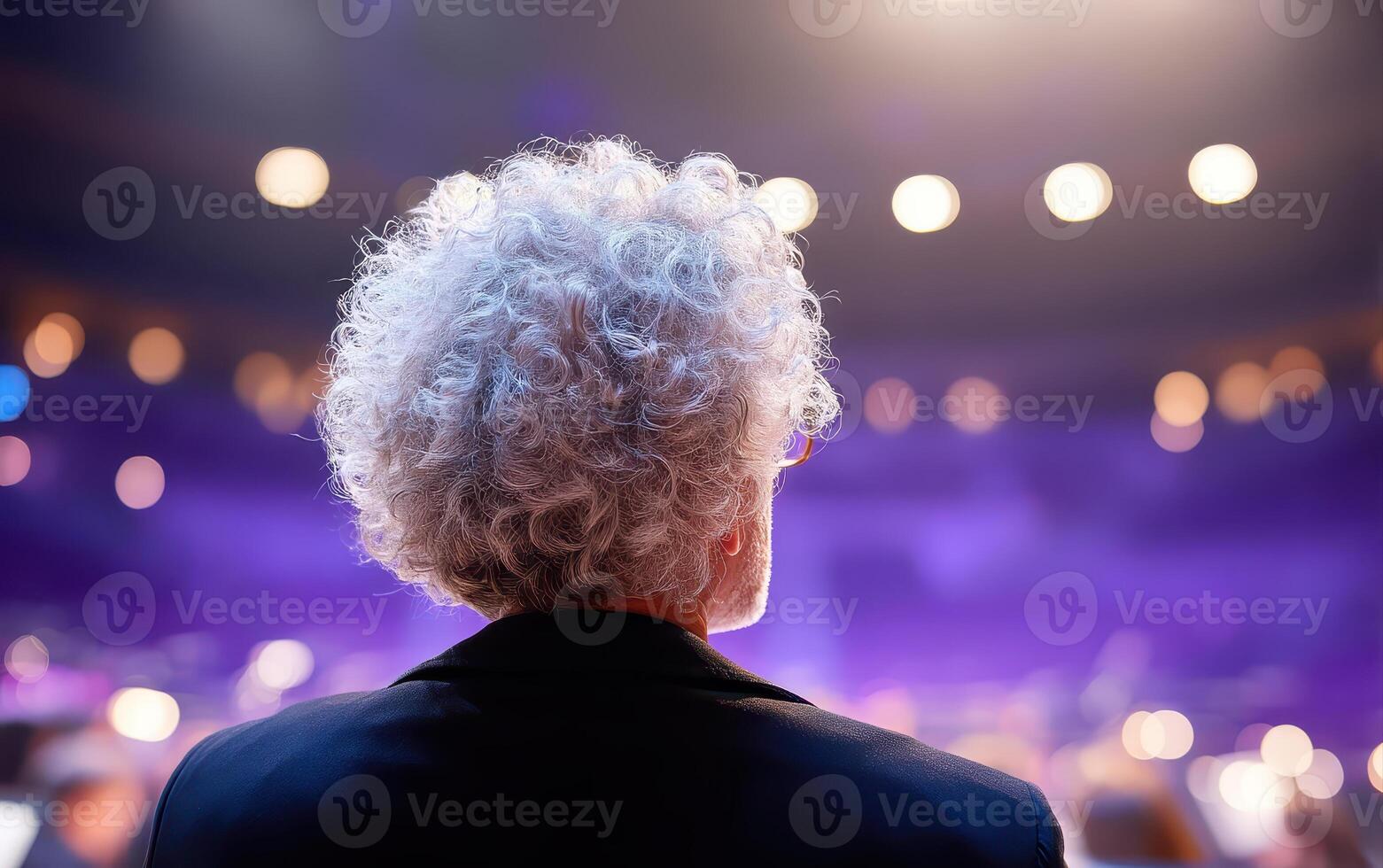 Orchestra conductor stands confidently, guiding musicians with passion and precision, creating harmonious atmosphere filled with music and emotion Pro Photo