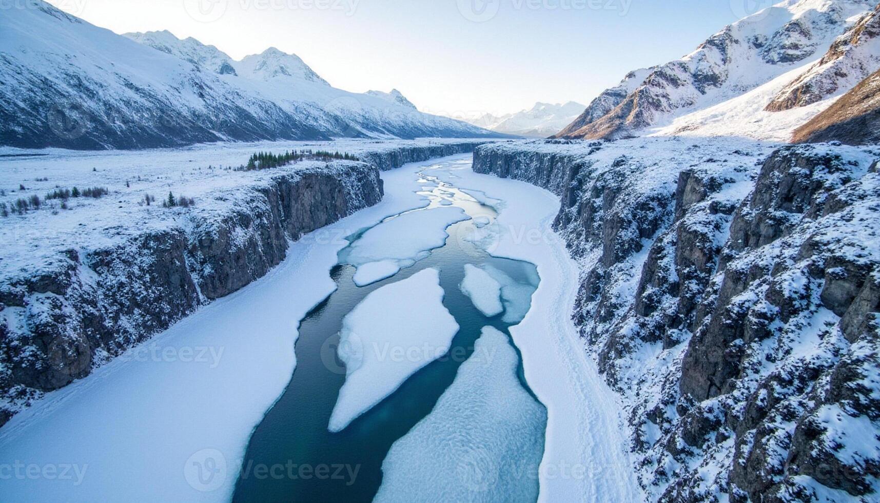 A unique viewpoint of the river system creating a fascinating abstract pattern on the winter ground Pro Photo