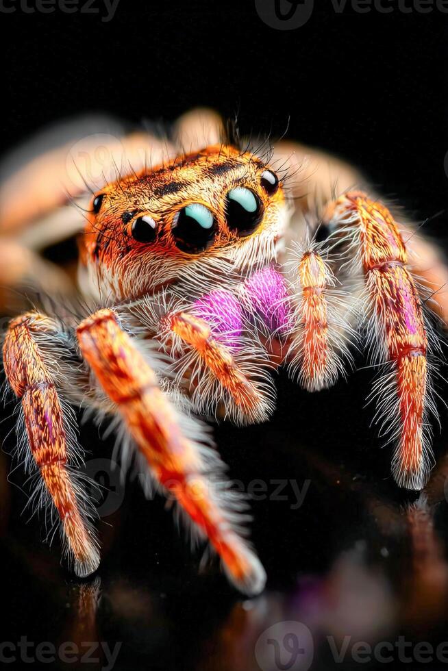 Colorful jumping spider showing details in macro close-up Pro Photo