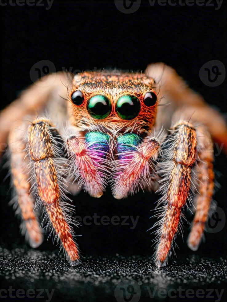 Colorful close-up of a jumping spider showcasing vibrant patterns and features Pro Photo