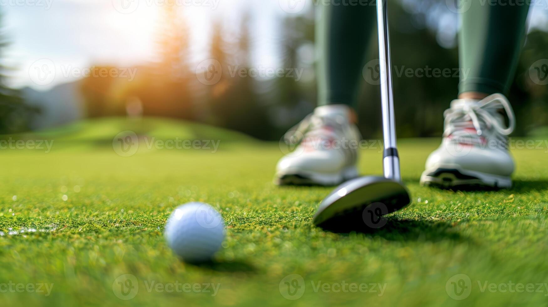 Dynamic close up of golfer swinging club to strike ball, capturing motion and technique Pro Photo