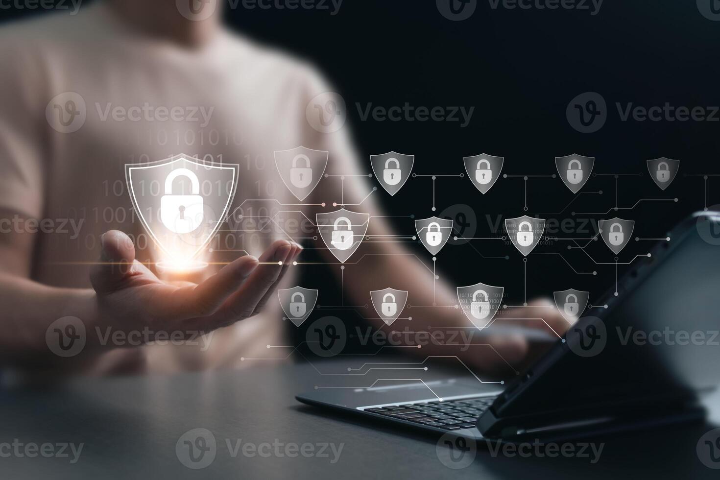 Cybersecurity concept, secure storage of large data files with modern infrastructure through systematic management system, automatic protection system and advanced protection of computer technology. Pro Photo