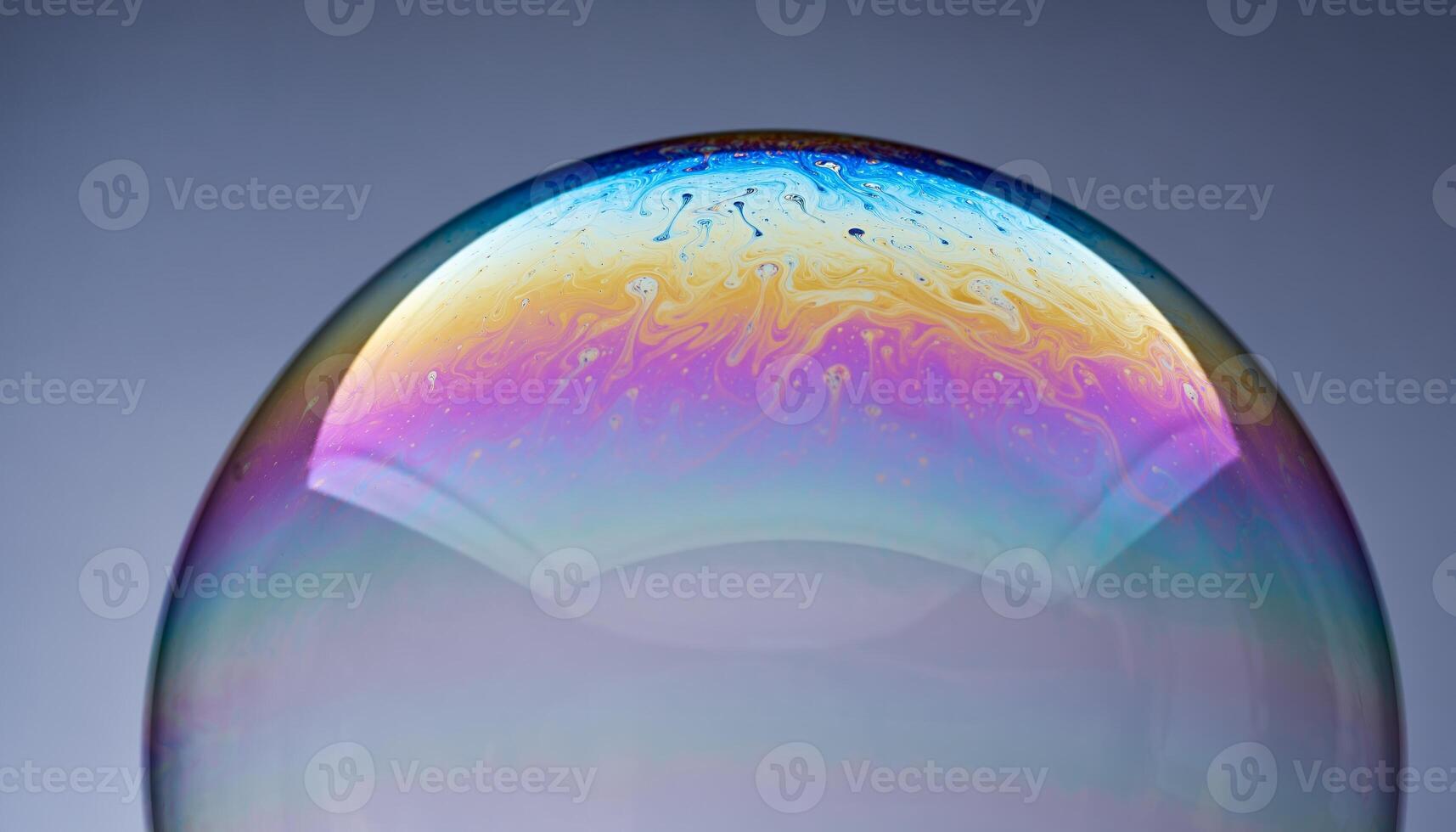 Colorful Soap Bubble with Iridescent Swirls on Smooth Surface Pro Photo