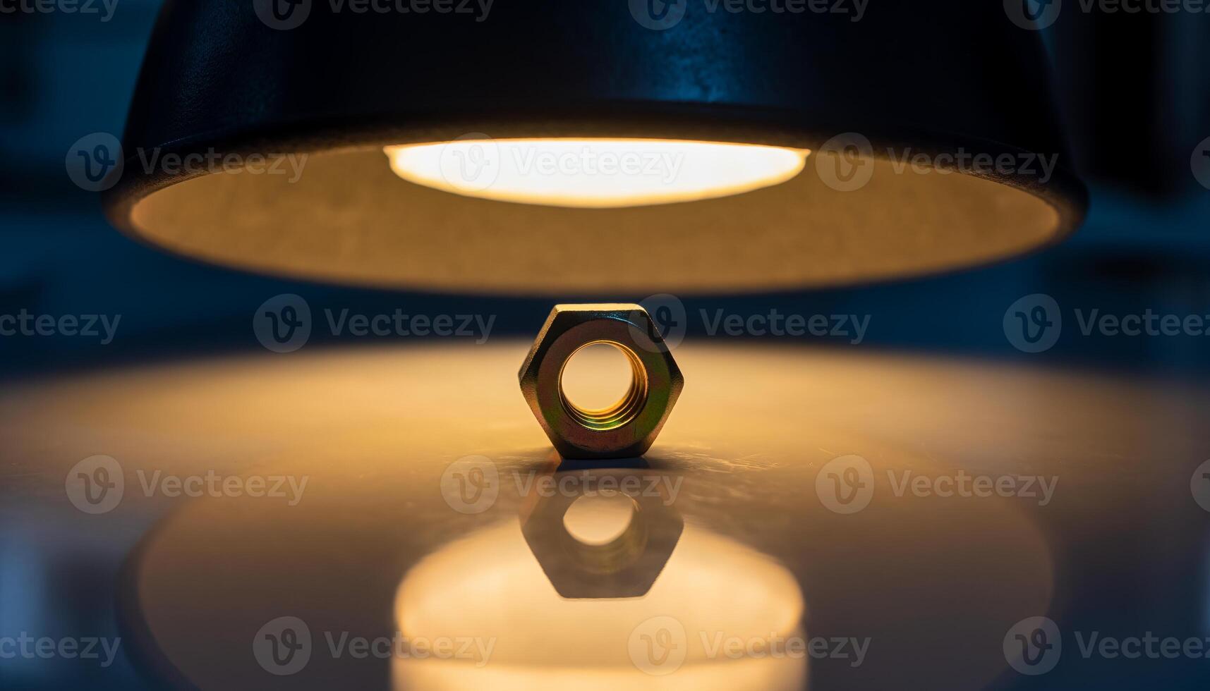Close-up of a Metallic Nut Illuminated by a Warm Overhead Light with Reflective Surface Pro Photo