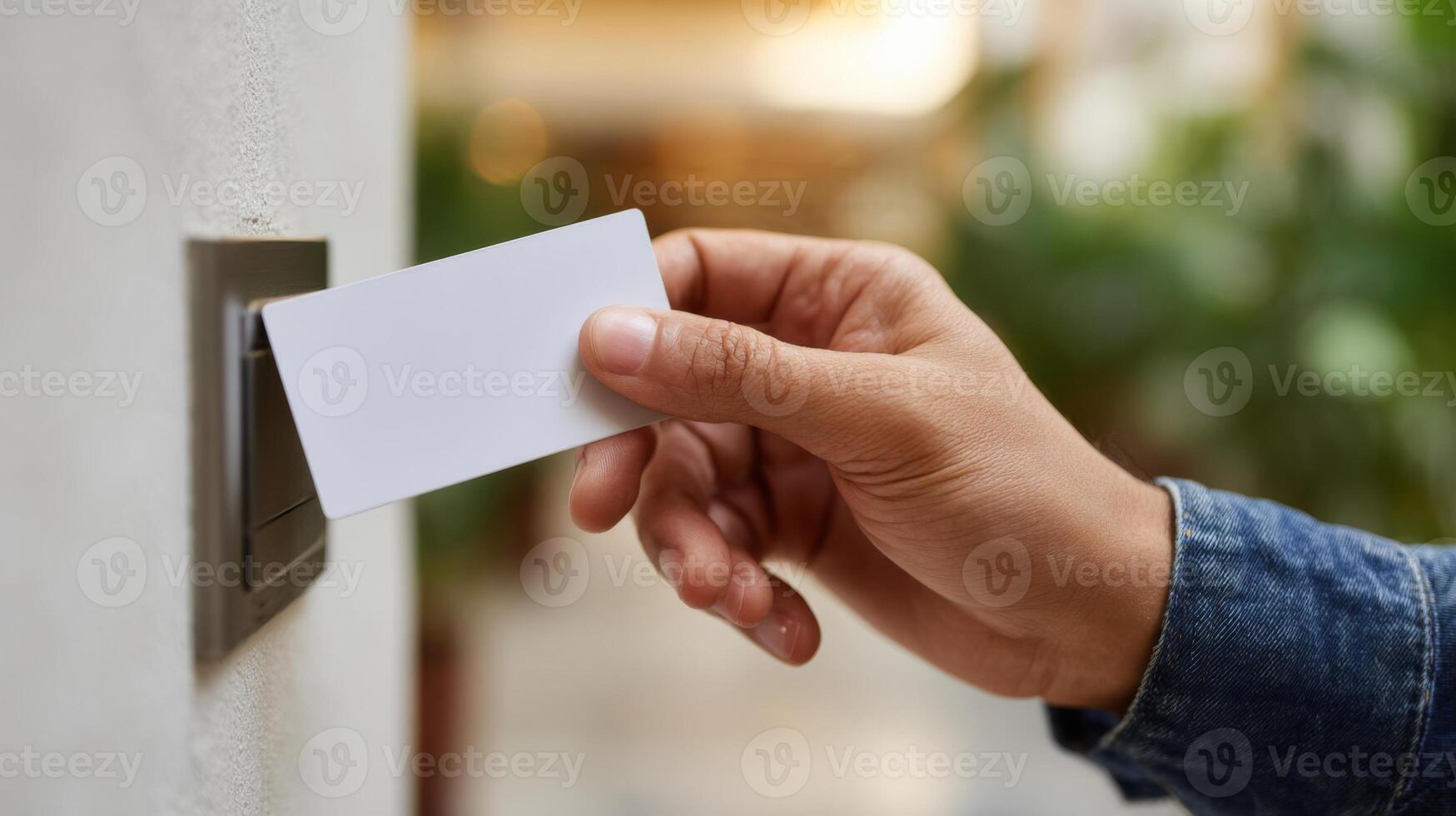 A close-up of a hand inserting a blank card into a reader, symbolizing access and technology. Pro Photo