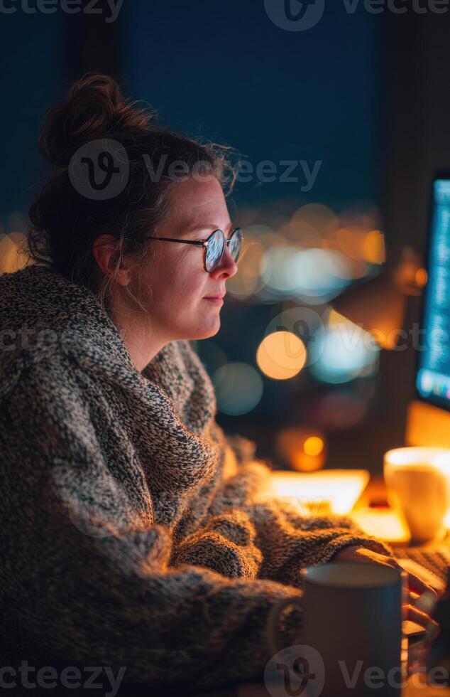 Plus Size Female Backend Engineer Working Late at Computer Pro Photo