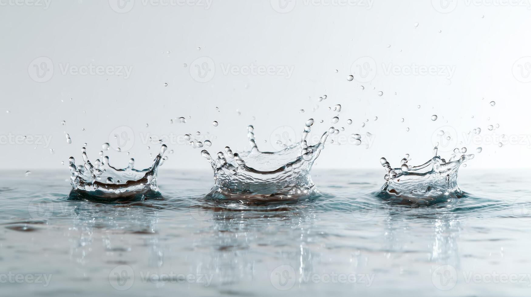 Water droplets create splashes on a calm surface in a minimalistic setting Pro Photo