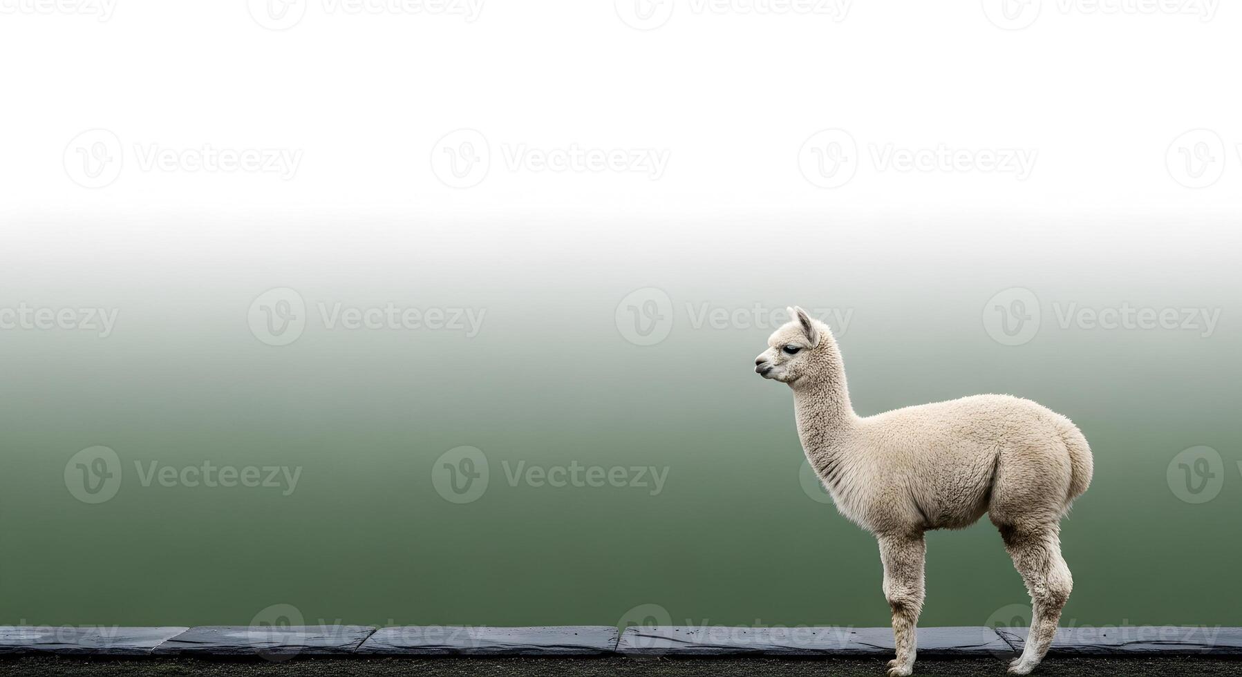 Captivating portrait of a white alpaca with a serene and misty background providing ample copy space Pro Photo