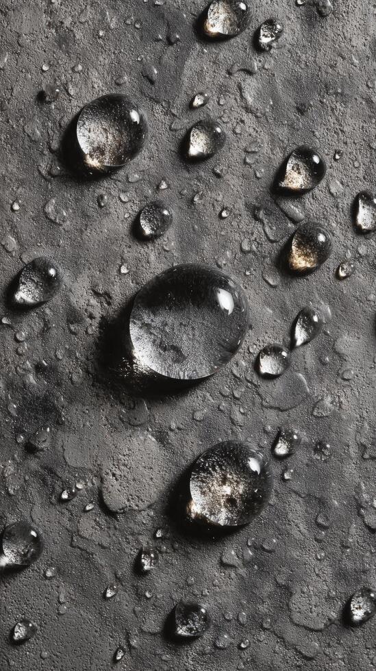 Water Droplets Gather on a Dark Surface Creating an Artistic and Textured View in Natural Light photo
