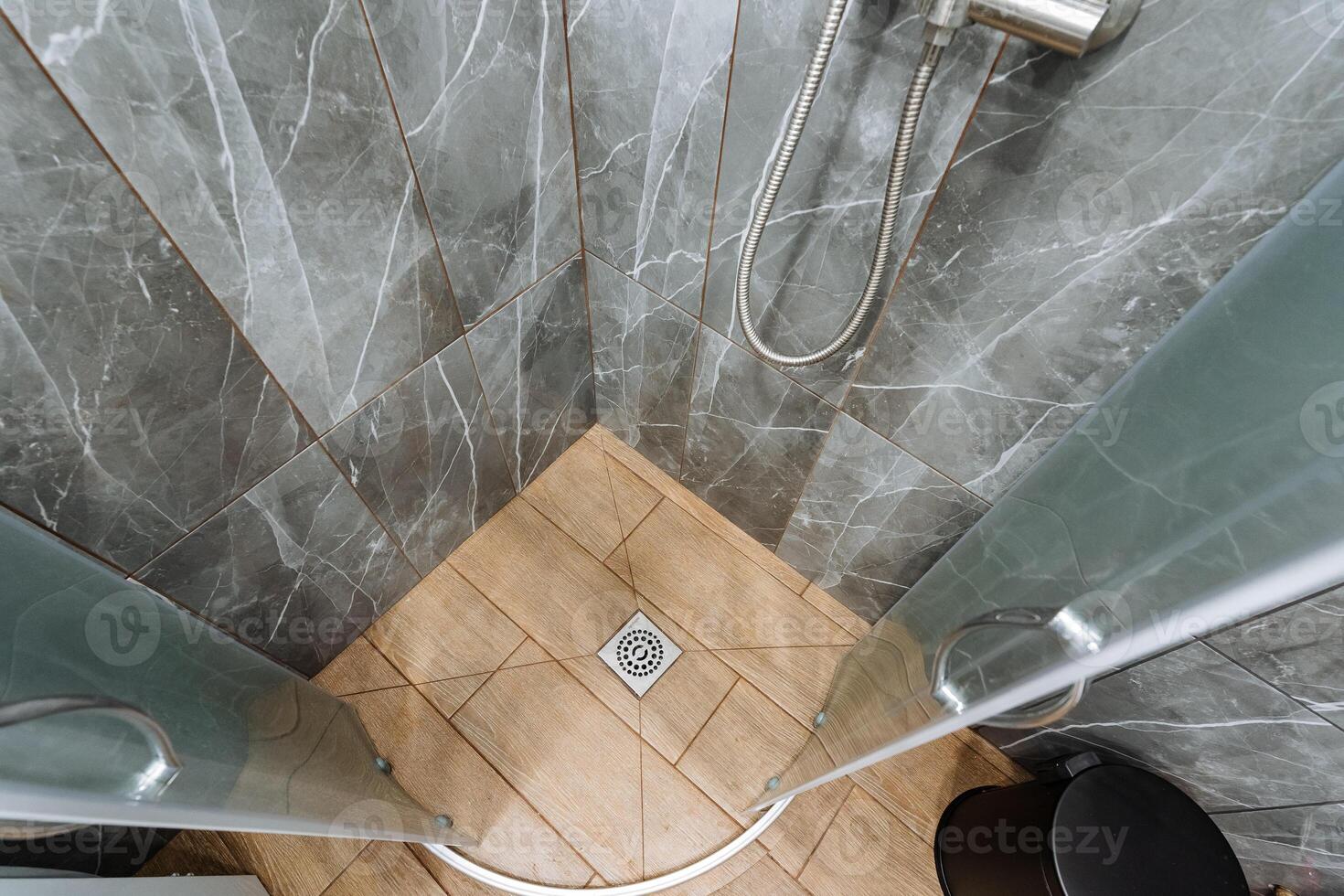 various textured and curved shower design elements, different design components for stylish modern shower space, comprehensive list of textured surfaces and curved glass features in shower design Pro Photo