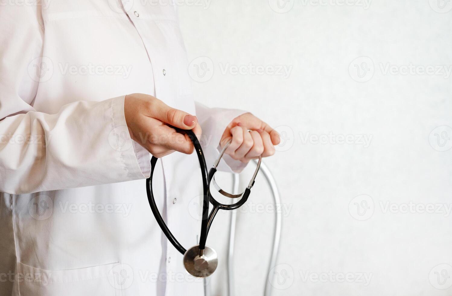 Doctor working on computer while managing patient records and prescriptions Pro Photo