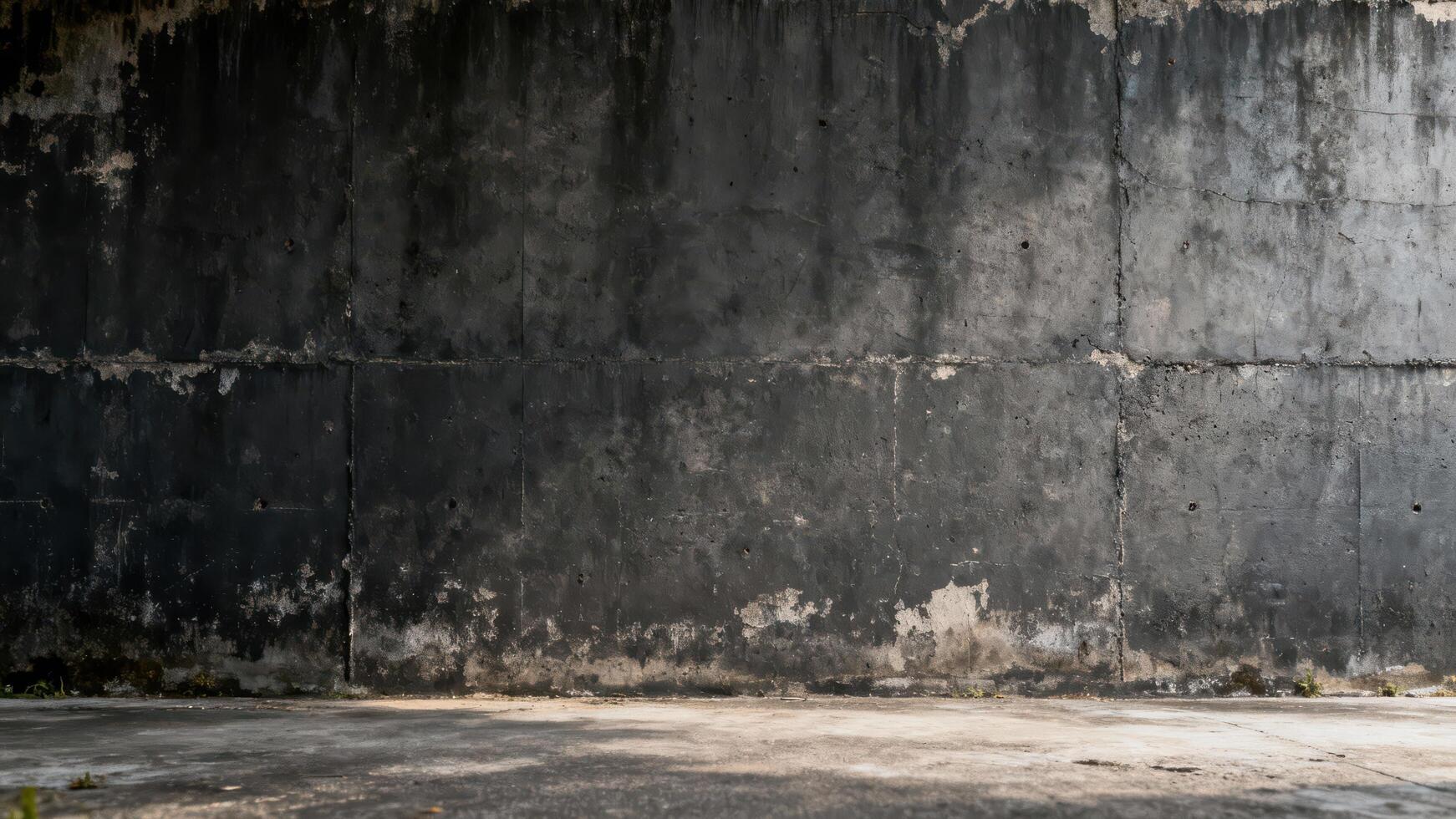Weathered dark concrete structure forms a grungy, empty background surface Free Photo