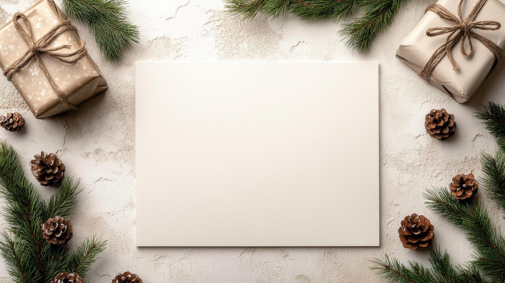 Christmas tree and presents on a white background with copy space for text Free Photo