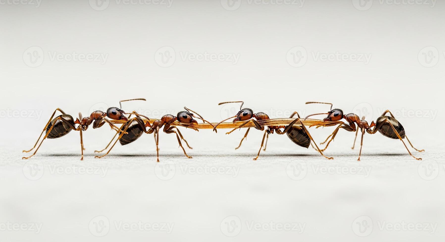 Ants form a bridge, showcasing teamwork and cooperation in a macro shot. Pro Photo