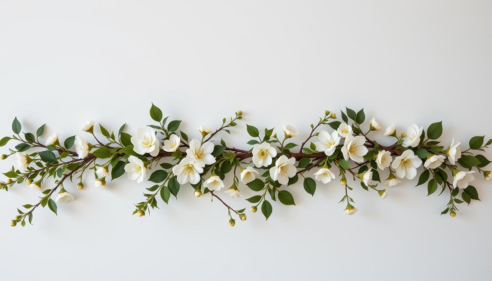A subtle garland of white blossoms and vines elegantly complementing any minimal setting. Free Photo