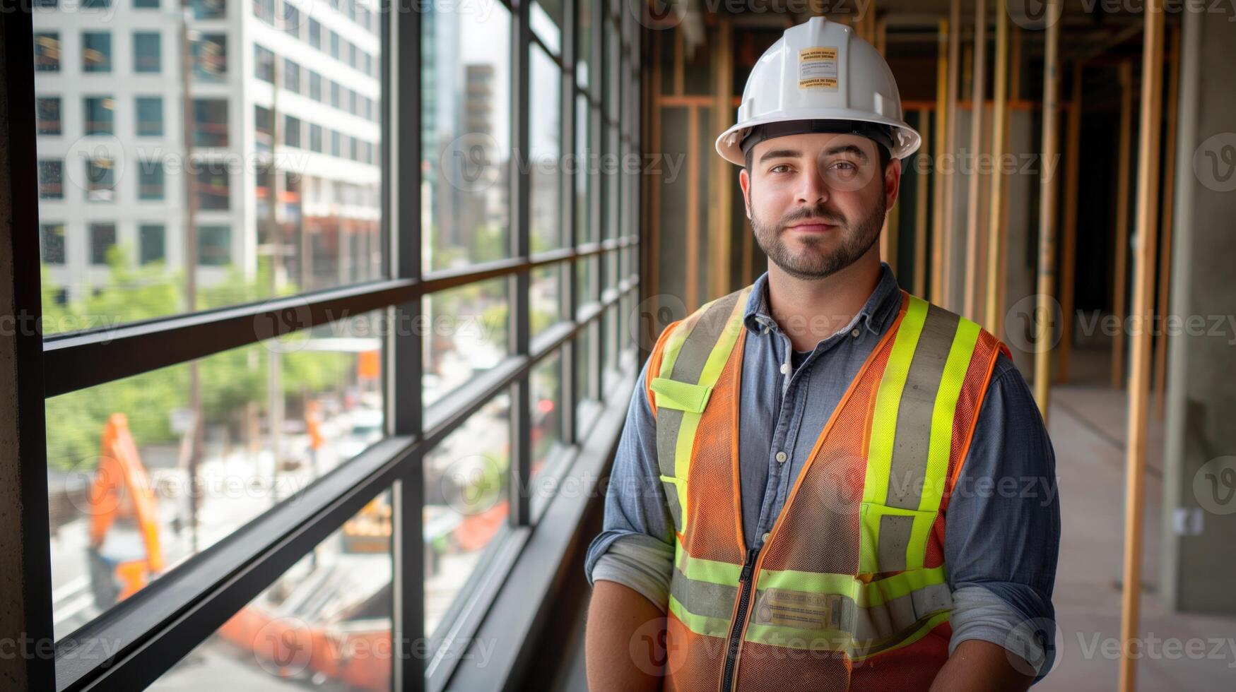 A Construction Worker Is Standing in Front of a Window, Inspecting the View Pro Photo