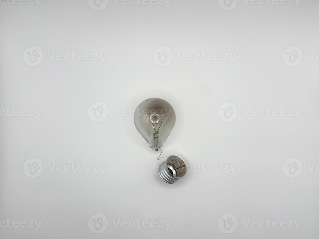 Tungsten light bulb lamp. Non-working light bulb, broken light bulb. Concept of light and dark, idea, electricity copy space, flay lay, top view Pro Photo