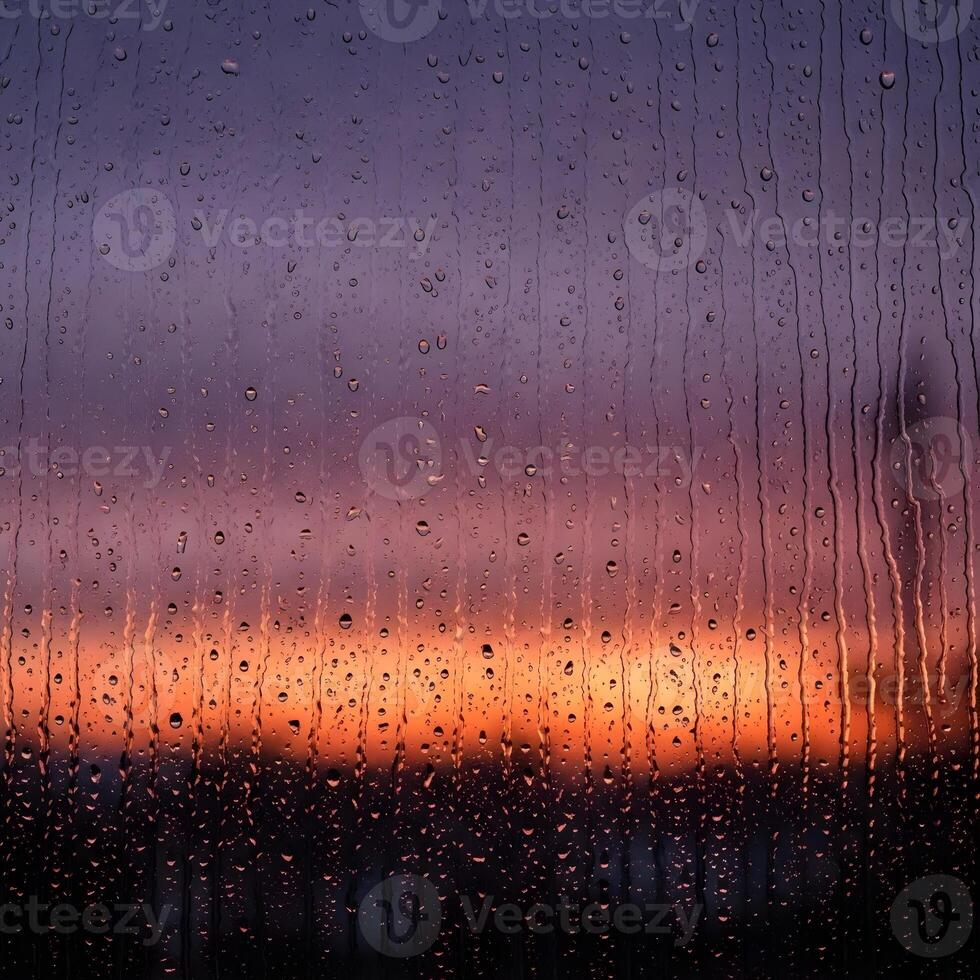 Raindrops on a Window at Sunset Abstract View of a Colorful Sky Through Rain Streaks Creating a Serene and Contemplative Atmosphere with Natural Light Pro Photo