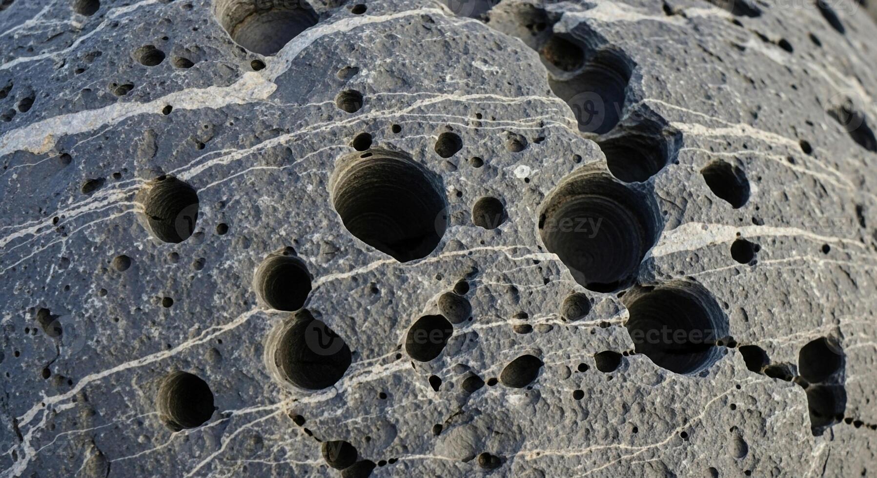 Abstract close up of textured surface with dark circular and oval shapes creating a unique organic pattern Pro Photo