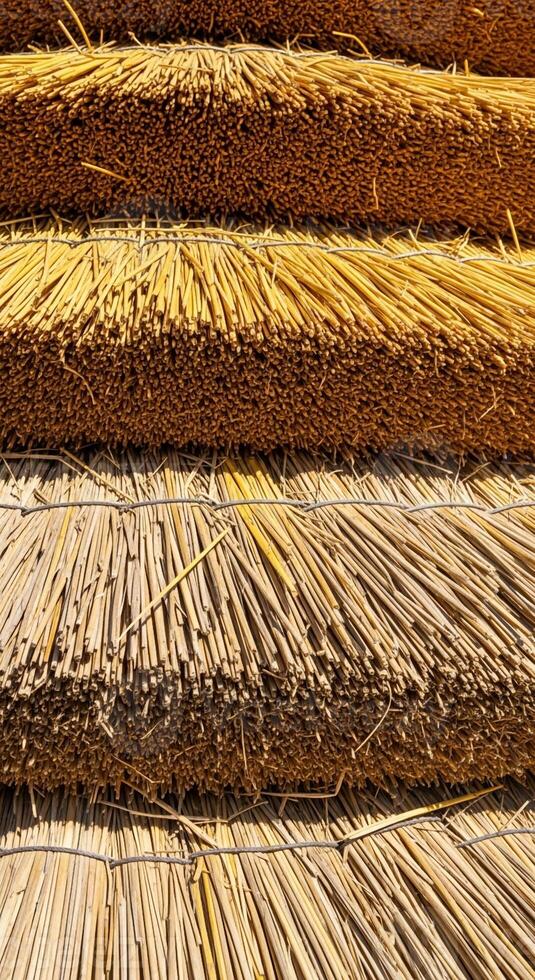 Close up view of layered dried straw or reeds creating a textured natural background pattern Pro Photo