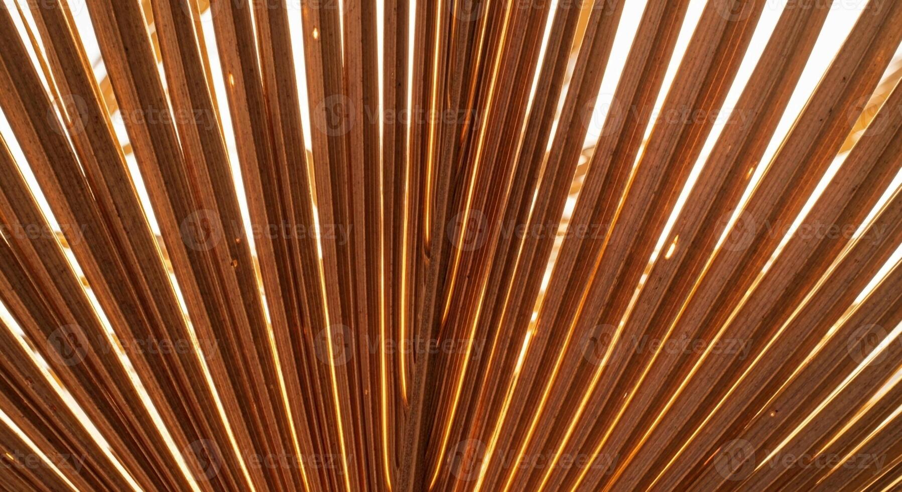 Abstract close up view of parallel brown palm frond ribs illuminated by warm backlighting creating a fan like pattern Pro Photo