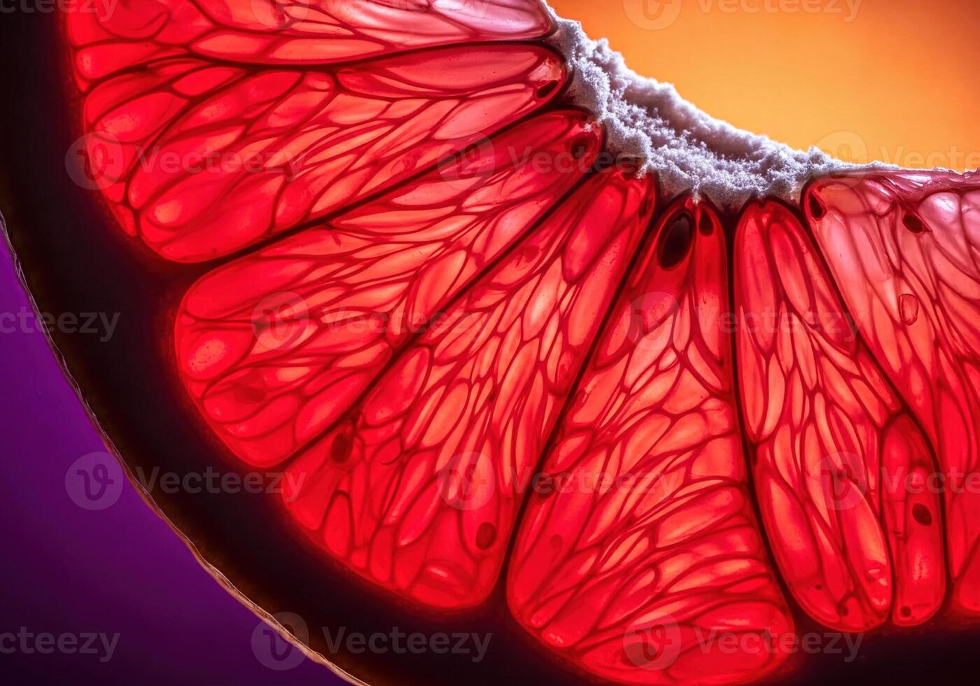Vibrant Red Grapefruit Slice Macro Shot Revealing Juicy Pulp and Segment Texture Pro Photo